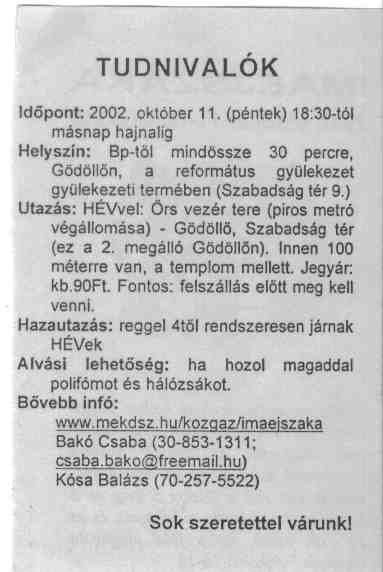 | 2006. január 14., 18:25 | Abortuszrol.doc (fájl) | Szabomoni | 57 KB | (Máthé Miki, orvos, mekdeszes, csodálatos előadás, biblikus teljesen, magával ragadó, meggyőző, átfogó, lényegre törő, végig a meghirdetett témáról beszélt, egyszerüen zseniális. Mindenképpen ajánlom!! A téma sokakat érdekelt, jón) |